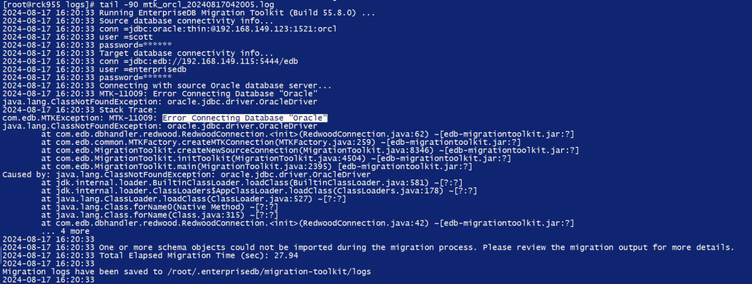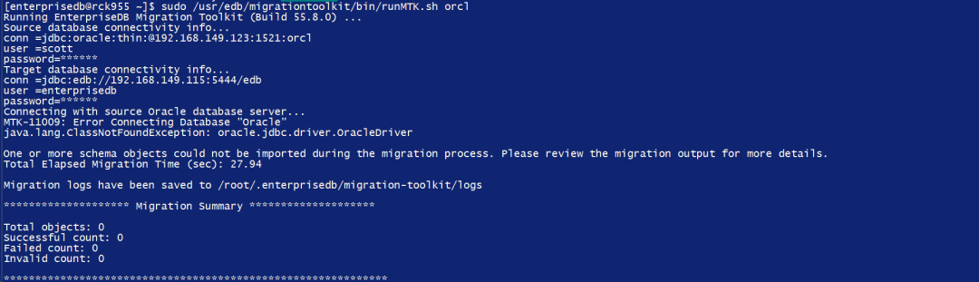 解决办法从Oracle官网下载ojdbc10.jar,然后放在目录/usr/edb/migrationtoolkit/lib下。然后再次运行sudo /usr/edb/migrationtoolkit/bin/runMTK.sh orcl
