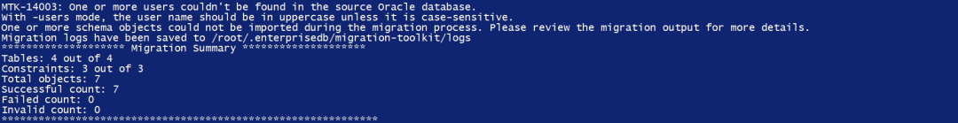 Migration Toolkit是EDB将Oracle Database迁移到EPAS的工具之一,是一个功能强大的命令行工具,可对迁移过程进行精细控制。使用迁移工具包分为两个步骤: