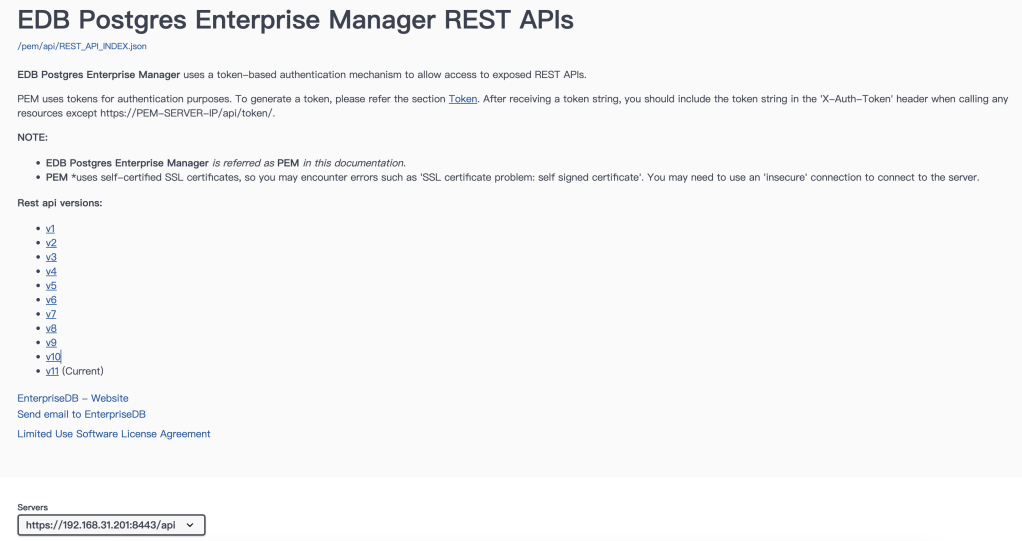 目前PEM的REST API最新版本是v11。