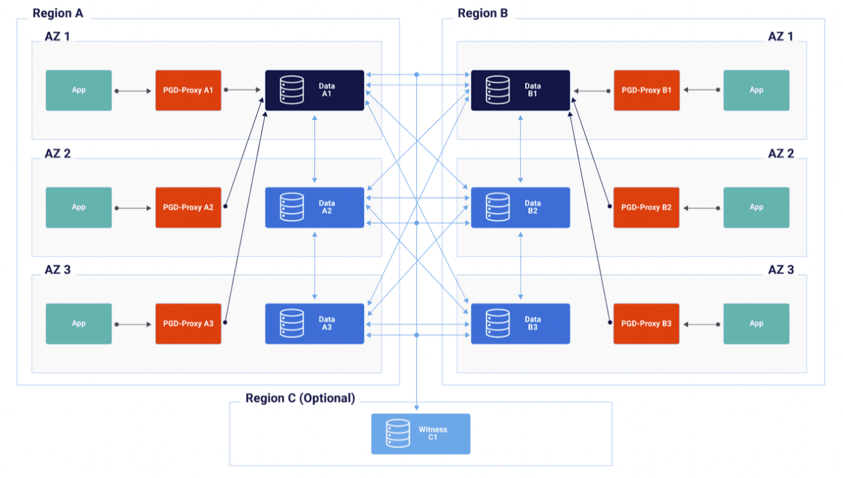 PGD v5可以在没有任何外部进程的情况下处理多主复制。这是EDB对Postgres的一个扩展,它创建了一个网状网络,每个节点都可以与其他节点通信。这使得该产品有别于像EDB Replication Server这样的单一分发进程。