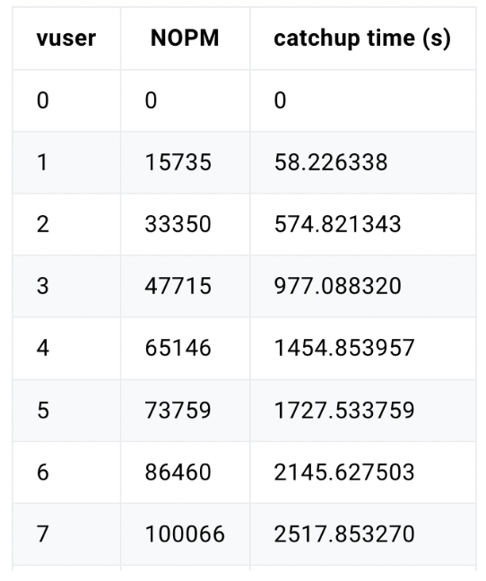 NOPM(每分钟执行的新订单交易New-Order Transactions Per Minute)率,由 HammerDB 返回;