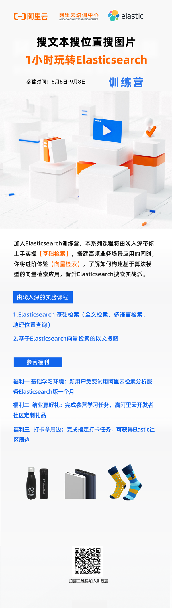 加入 Elasticsearch 训练营,从全文检索到向量检索,搭建高频业务场景,构建进阶向量检索应用。带你拓展技术视野,晋升 Elasticsearch 搜索实战派。