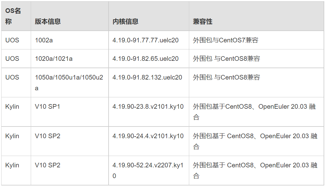 1.主动了解信创厂商kernel支持政策:当前OS厂商的kernel版本一般是4.19,如果是有更新,需要跟OSV确认好支持周期信息及变更细节(changelog)。