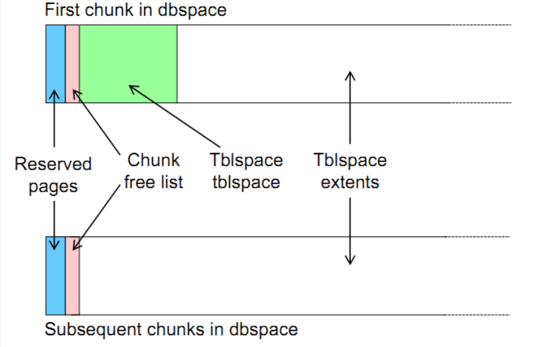 | Layout of a Root Chunk | dbspace中的第一个chunk | dbspace中随后的chunks |