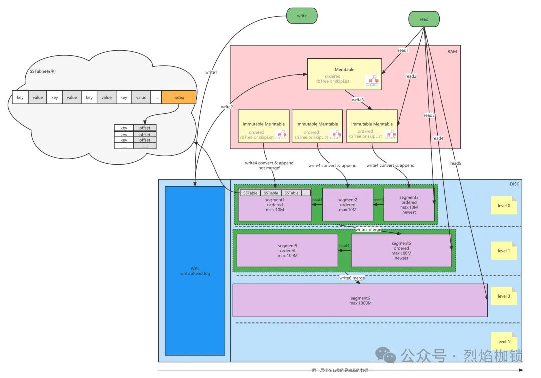 读放大。如读取操作可能需要扫描多个 SSTable文件,导致查询性能不如B-tree 等结构稳定。此外,合并操作可能会引起较长的停顿时间,影响读写性能,对于实时性要求较高的系统可能会有影响。