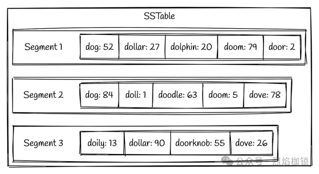 SSTable (Sorted String Table) 是 LSM 树在磁盘中持久化存储的数据结构,它是一个有序的键值对文件。