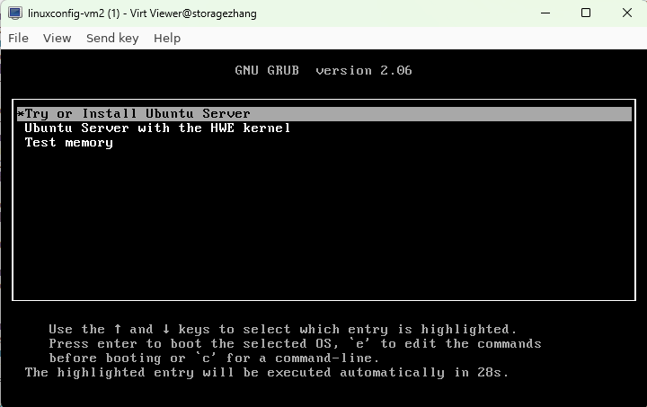 此时会弹出来一个图形化的安装界面,这个图形界面就是virt-viewer,具体如下所示。可以看出这就是Ubuntu的安装向导。