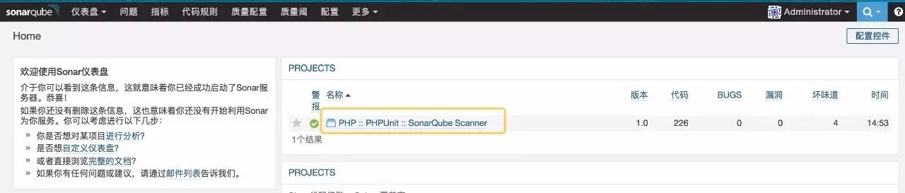 登录sonar-在仪表盘中看到了我们刚刚运行的检查