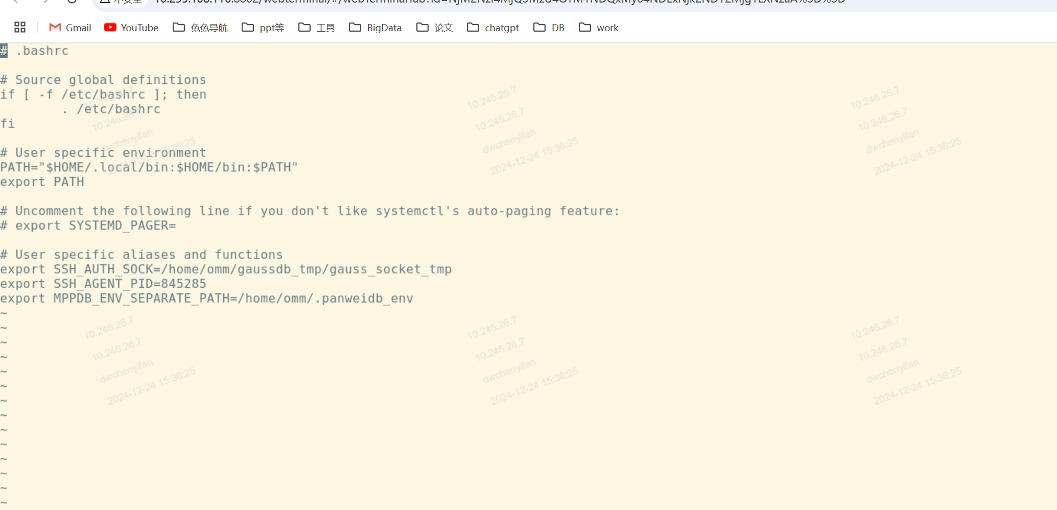 我们source ~/.bashrc之后发现问题得到了解决,但是我又发现,只要当我们切换到主机的其他用户,再切回omm用户之后,omm相关的的环境变量又失效了,这个时候我们在使用gs_om或者cm_ctl工具时会提示commond not found