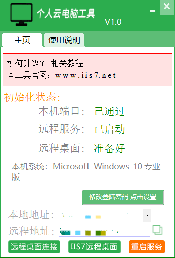 首先,您需要访问电脑A下载“个人云电脑工具”,然后打开个人云电脑,得到远程地址,如图所示: