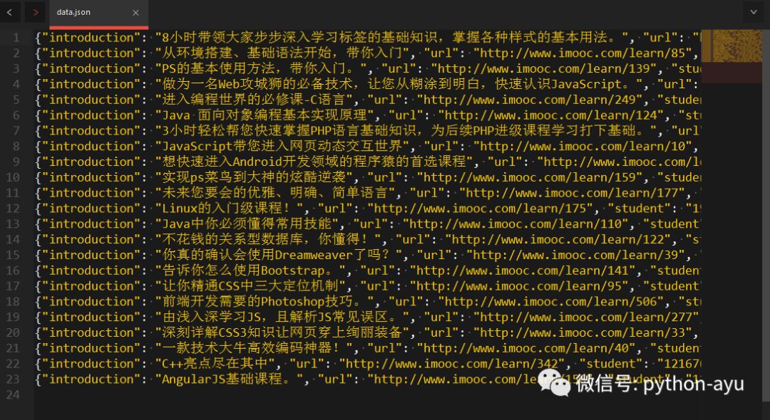就可以在项目根目录下发现data.json文件,里面存储着爬取的课程信息。