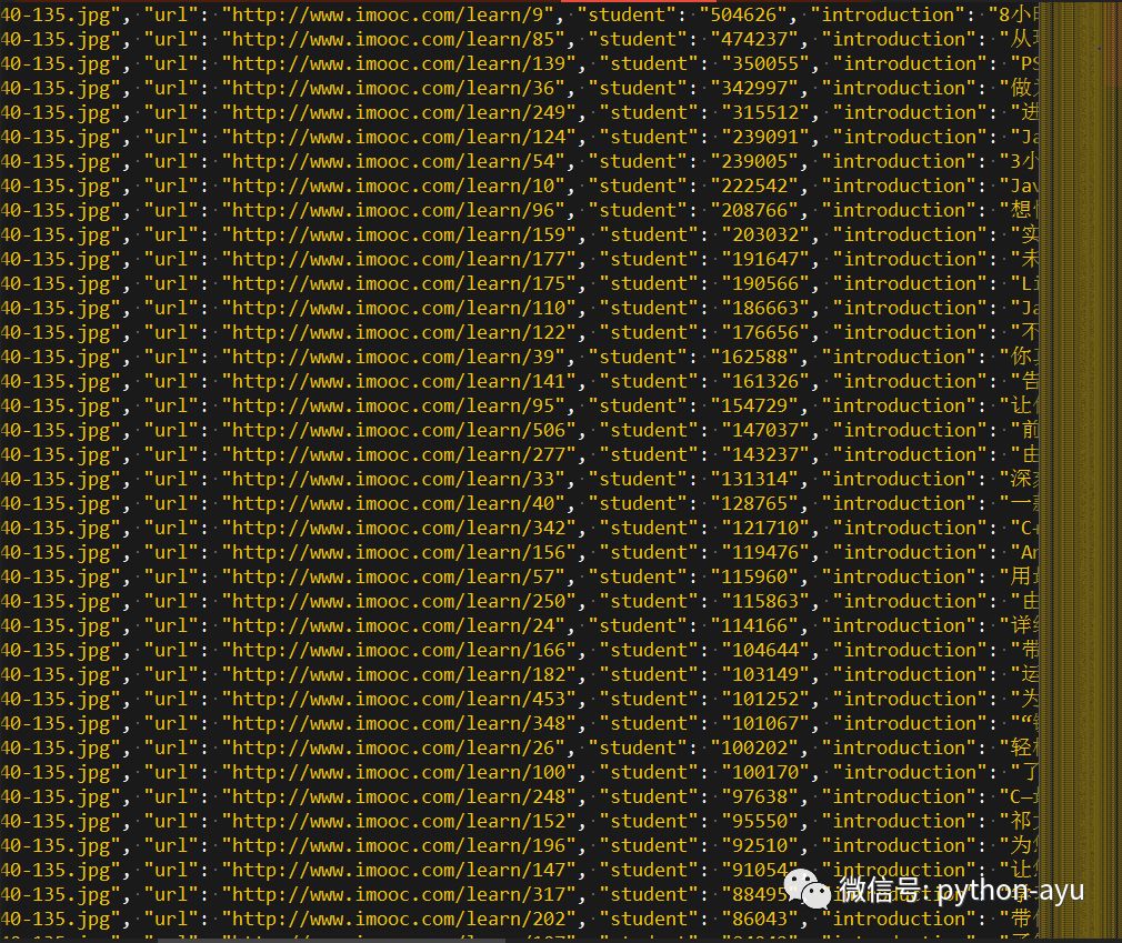 上面的处理结束后我们就成功的抓取了慕课网的全部课程信息了。