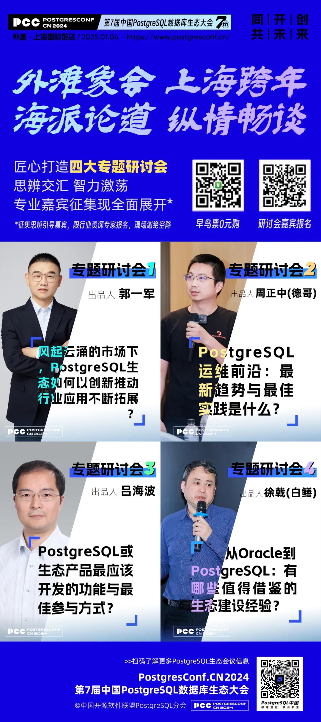 - 冯若航(Pigsty作者,PostgreSQL专家):讲解如何通过自建数据库解决云端迁移难题,实现显著的成本效益改进。还将展望未来数据库形态。