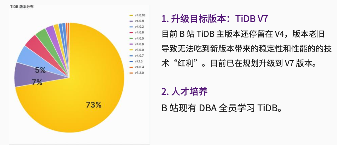B 站的 TiDB 版本目前还属于比较老的版本,但我们有一些升级规划: