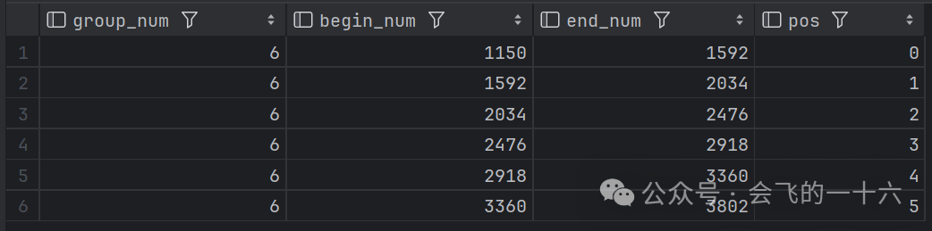 select group_num, min_num + group_step * pos begin_num --区间开始, min_num + group_step * (pos + 1) end_num --区间结束, posfrom (select pos, group_num, group_step, min_numfrom (select--分组方法CEIL(1 + LOG(10, count_num) LOG(10, 2)) group_num,--极差/组数 =组距CEIL((max_num - min_num) CEIL(1 + LOG(10, count_num) LOG(10, 2))) group_step,min_numfrom (SELECT MAX(sales_number) max_num,MIN(sales_number) min_num,COUNT(*) COUNT_NUMFROM sales) t) tlateral view posexplode(split(space(cast(group_num as int) - 1), space(1))) tmp as pos, value) t