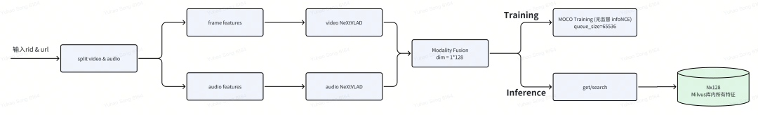 将用户实时观看的视频音乐特征进行embedding,结构化的数据从audio list 中的数据进行相似性查询,将对应的聚在一起的视频推给用户。