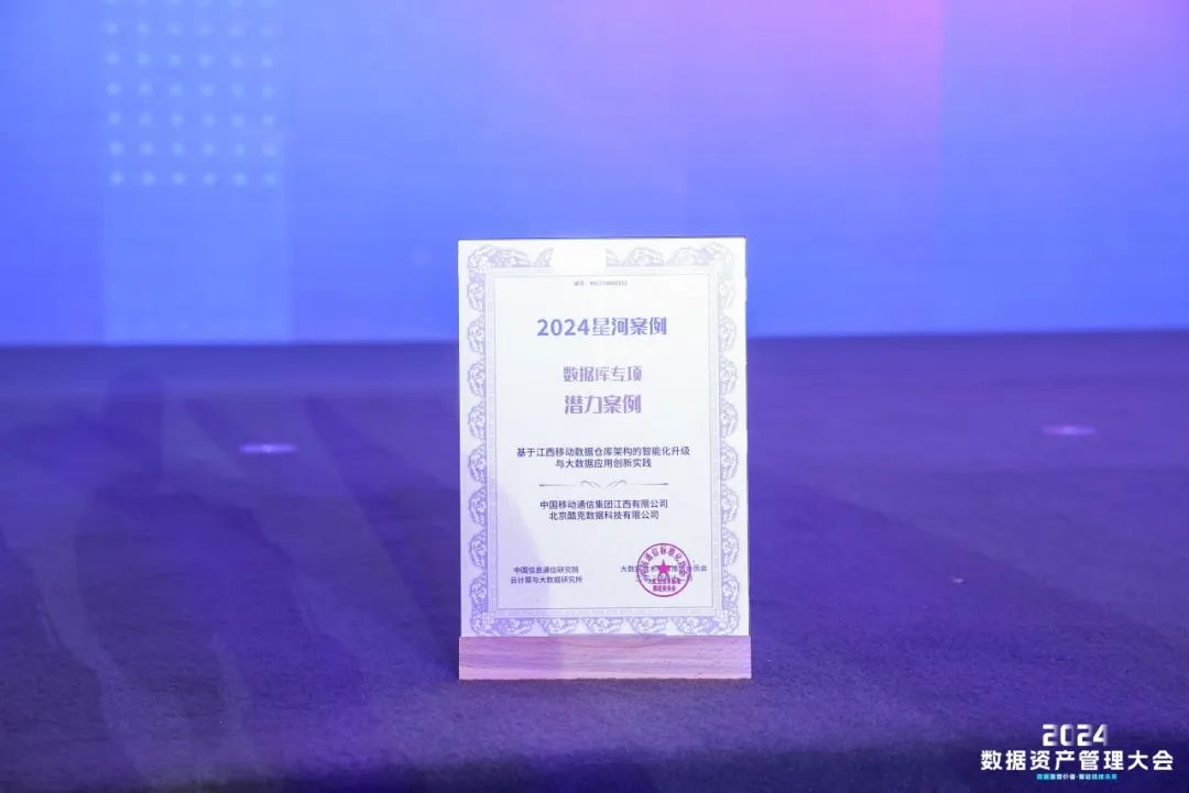 在会上,第八届大数据“星河(Galaxy)”案例评选结果正式公布。中国移动通信集团江西有限公司与酷克数据联合申报的《基于江西移动数据仓库架构的智能化升级与大数据应用创新实践》应用案例,成功入选第八届大数据“星河(Galaxy)”数据库潜力案例。