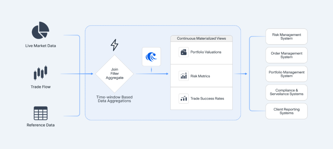 RisingWave 的一个突出特点是其物化视图[7],这些视图作为实时更新的、可查询的流数据快照,非常适合支持关键的金融工作流: