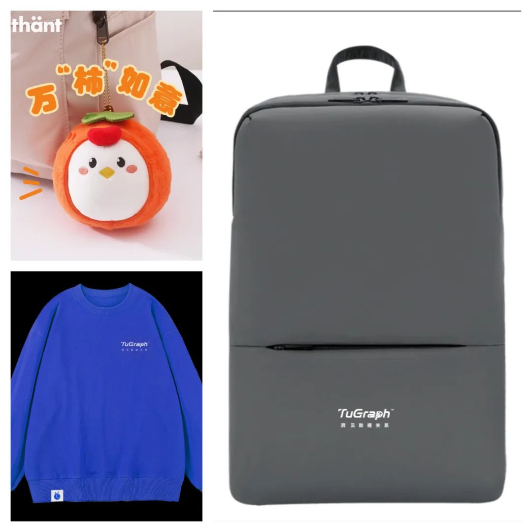 • 一份TuGraph社区定制纪念品(背包、卫衣、蚂蚁庄园小鸡玩偶任选1件)。
