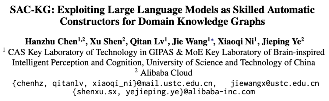 标题: SAC-KG: Exploiting Large Language Models as Skilled Automatic Constructors for Domain Knowledge Graphs