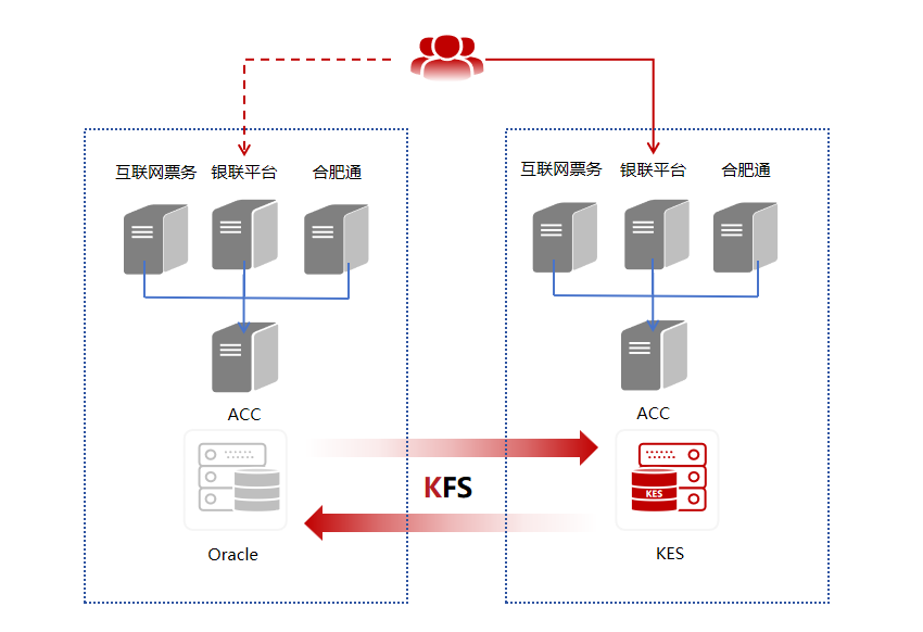 金仓KFS异构同步工具,能够实现跨数据库品牌、跨硬件平台的数据同步。利用同步工具,在不影响既有线路业务的前提下,配合线网云平台的架构升级,逐步实现已开通运营线路的接入。为保障ACC与ITP的业务连续性及安全性,要求替换后的KES与原数据库并行一段时间。