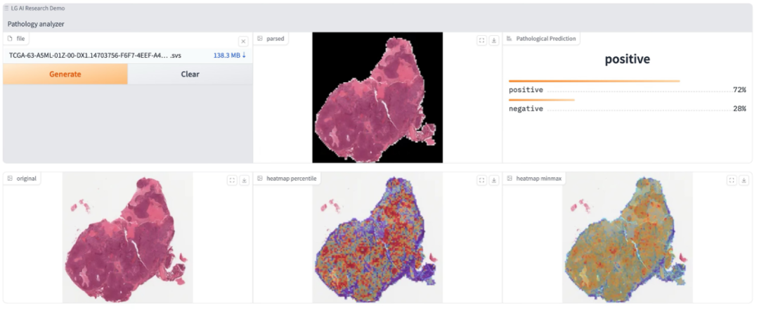 组织病理学图像可以通过EXAONEPath进行分析和可视化,识别细胞内可能的基因变异。颜色变化可以提供关于细胞中潜在基因变异或异常的重要线索。