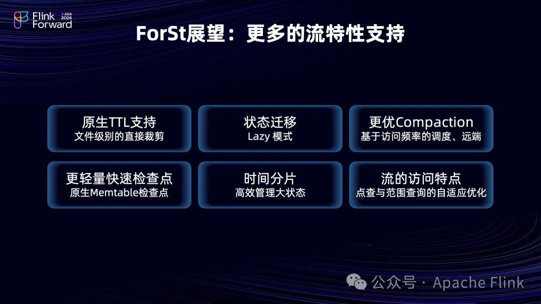 随着流计算特性的不断加持,ForSt 无疑会有更加长远和广阔的发展前景。我们很欢迎各位同仁一起建设更好用的流计算状态管理。