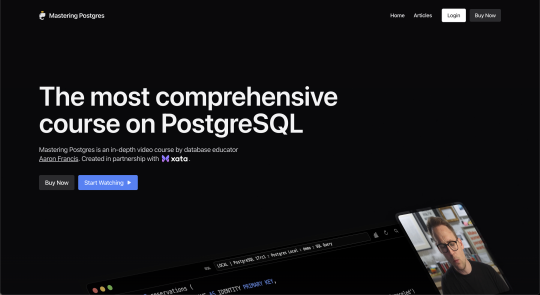 地址:https://masteringpostgres.com/通过实际案例,深刻理解 PostgreSQL 的核心原理。