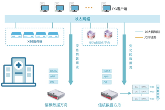 根据现状及需求,信核提供信安方舟解决方案:在中心机房部署2套信安方舟,保护重要服务器和虚机数据,防范勒索病毒,确保数据安全与业务连续。