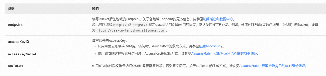 然后根据提示分别设置Endpoint、AccessKey ID、AccessKey Secret和STSToken参数(这个可以为空)。