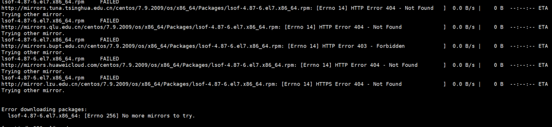 lsof-4.87-6.el7.x86_64: [Errno 256] No more mirrors to try.