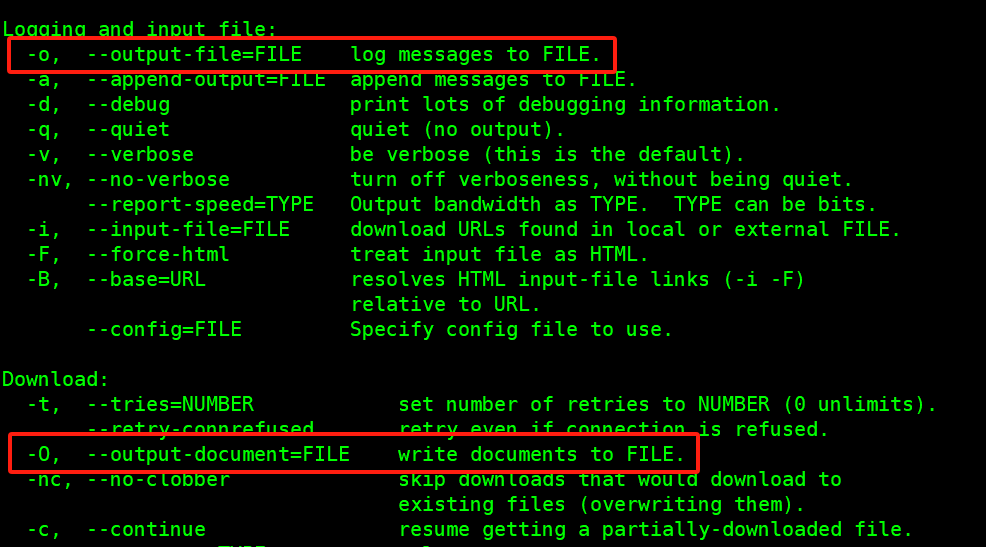 而当使用小写字母 "o" 时,该选项指的是 "Log file",用于指定日志文件的名称。使用 `-o` 后跟一个文件名会让 `wget` 将所有的执行信息、错误信息和进度报告输出到那个文件中,而不是标准错误输出(通常是终端屏幕)。