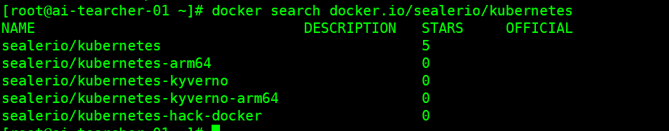 比如我需要查询下 docker.io/sealerio/kubernetes 的所有tag,我们本地docker serach 只能查询有对应的镜像。