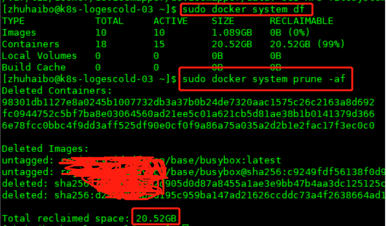 使用 docker system prune 命令可以清理掉未使用的镜像、容器、网络和卷,从而释放空间。本案例就是主机存在未及时释放掉的容器。