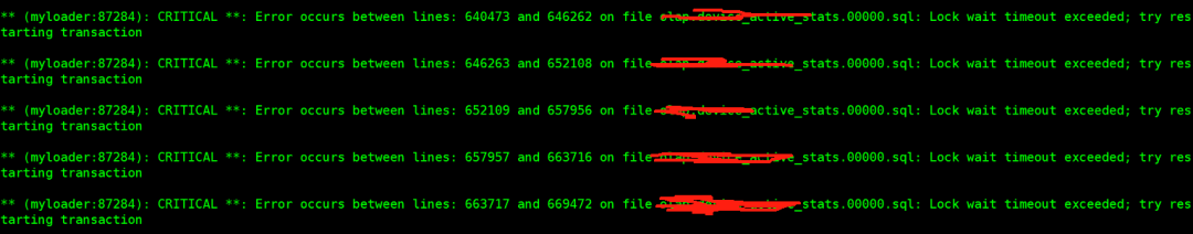 结合我在 myloader 的时候,这个表一直提示锁定等待超时,我怀疑可能是表出现了问题。我尝试了跳过错误的事务,实在是太多了。。