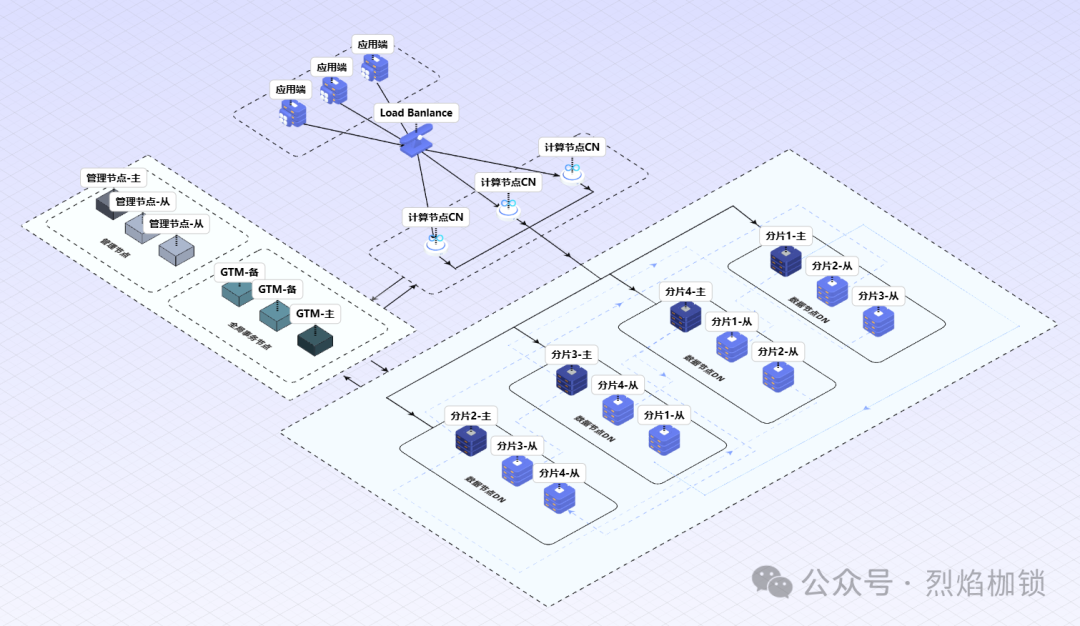 包括:计算节点CN、数据节点DN、管理节点、GTM节点 四个部分。