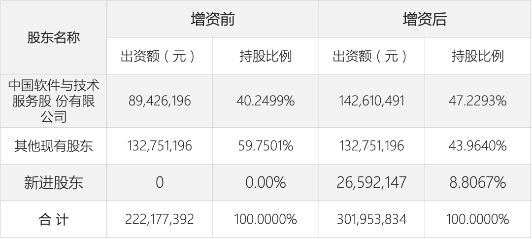 12、增资前后股权结构(假定麒麟软件实现满额增发,且其他原股东均放弃优先认缴权,以经国资备案的麒麟软件净资产评估值折算的每注册资本的价格模拟测算结果):