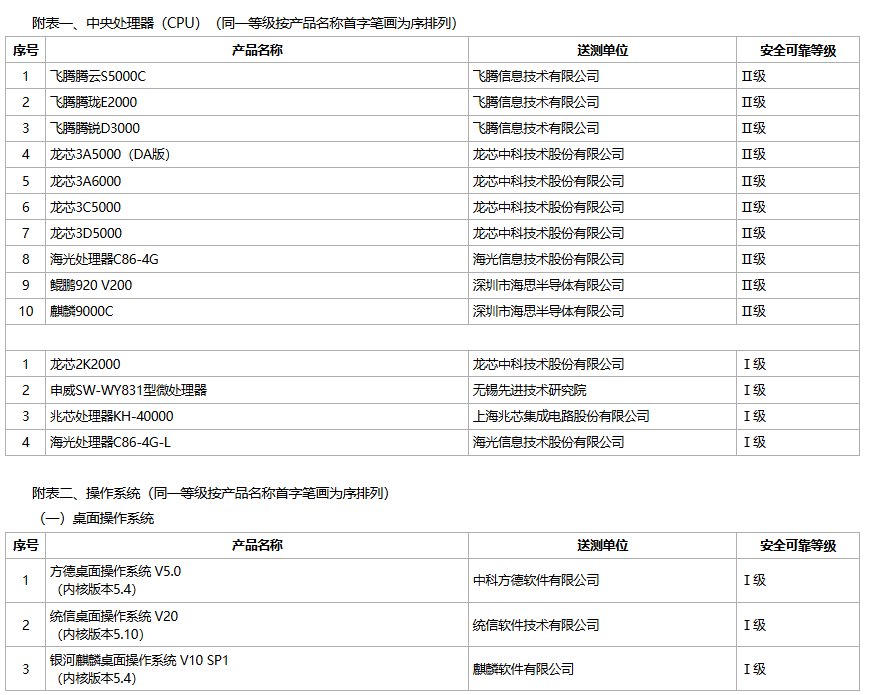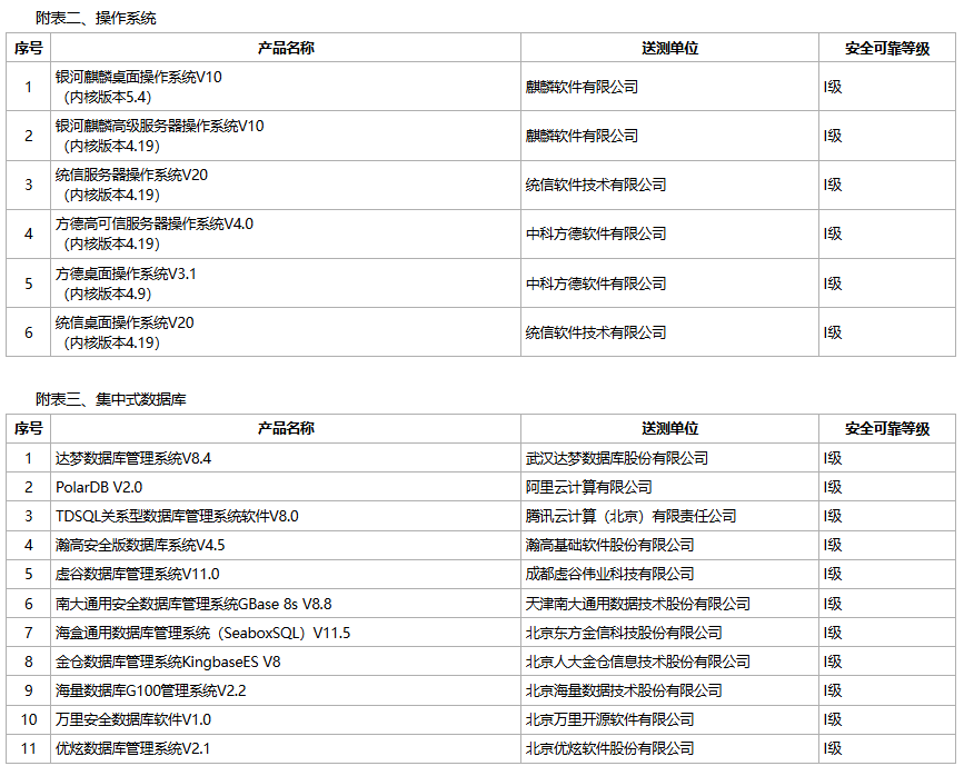 以下为截止2024年10月发布的三批次安全可靠测评结果汇总: