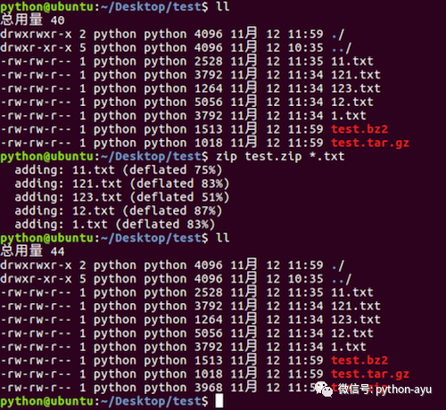 使用zip命令压缩的文件占用空间比较多, 当时比较通用,操作更加简单。
