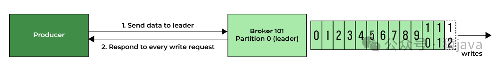 生产者会等待来自 Leader分区的确认。Leader分区接收到消息并写入本地日志后即返回确认。这种方式在 Leader分区可用时可靠,但如果 Leader分区发生故障,可能会丢失数据。从 Kafka 2.0 开始,默认值是 acks=1