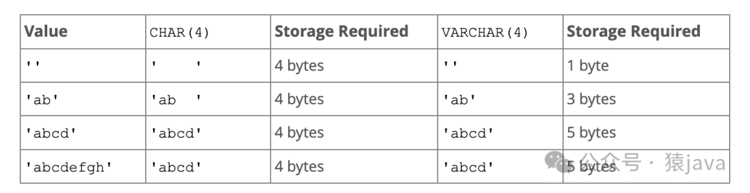 在非严格模式下,官方对 char和 varchar进行的对比图: