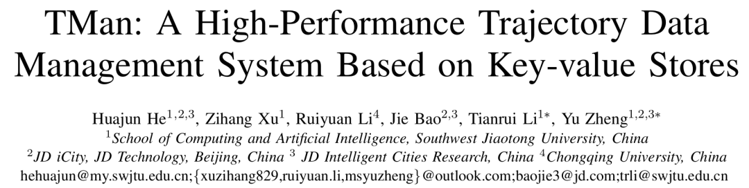 在这个时代,有一种数据类型因其具有的独特的价值和面临的挑战而备受关注——那就是轨迹数据。想象一下,每天有成千上万的物流车辆在城市中穿梭,每一辆都在生成大量的移动轨迹。这些数据不仅蕴含着巨大的商业潜力,也是智慧城市建设不可或缺的一环。然而,如何有效管理和查询这些海量的轨迹数据,成为了一个亟待解决的问题。本次为大家带来数据库领域顶级会议ICDE 2024的文章《TMan: A High-Performance Trajectory Data Management System Based on Key-value Store》