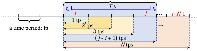 定义2.(TB:时间箱)。TBi,j是从第i个时间段开始到第j个时间段结束的时间箱。注意,i ≤ j。
