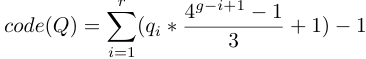 定义7(QuadrantSequence,𝑄:单元格的象限序列码)。给定象限序列𝑄=𝑞1 𝑞2 ... 𝑞𝑟,其整数序列码为: