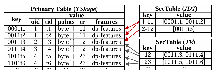 主表结构(Primary Table):TMan使用主表存储轨迹数据。