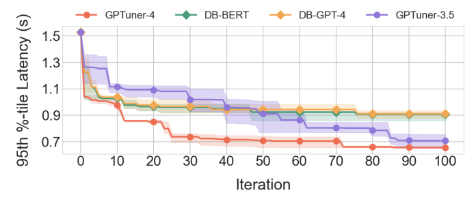 分析不同语言模型对 GPTuner 性能的影响。实验结果表明,GPTuner 可以有效地利用更复杂的语言模型,从而进一步提高性能。