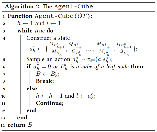 在算法2中,Agent-Cube首先初始化索引h和l来表示立方体