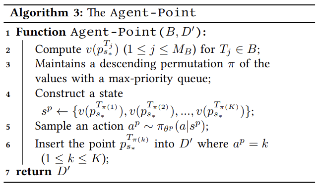 论文将Agent-Cube选择的立方体记为B,定义Agent-Point在B内选择要引入到数据库中的点的MDP。