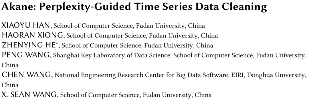 Perplexity-Guided Time Series Data Cleaning》。该文提出了基于困惑度的时间序列数据清洗算法Akane,以此来更敏感的甄别脏数据,并通过上下文给出更准确的清洗决策以确保框架的可行性。
