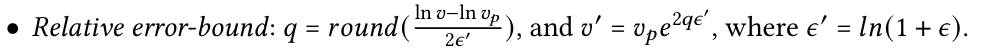 CSC算法的时间复杂度为𝑂(𝑛)。如图2b所示,CSC算法将SC+SC的压缩吞吐量提高1.27–1.40x倍。为了进一步减少存储空间,MOST算法在模型参数和异常值的编码方面进行了优化,包括量化和尾数截断。对离群值编码的量化。为了减少异常值的存储空间,文章采用量化的方法对异常值进行处理。将每个异常值𝑣与其所在的段关联,或者如果异常值位于两个段之间,则将其与前一个段关联。接着使用段的模型计算异常值的预测值𝑣𝑝。对异常值进行量化,量化结果𝑞和解压缩后的重建值𝑣′的计算如下: